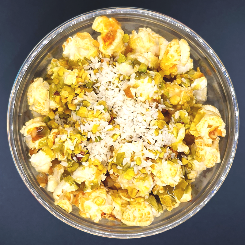 Der erste Biss enthüllt die perfekte Kombination aus knusprigem, luftigem Popcorn und den köstlichen Aromen des traditionellen Baklava-Gebäcks.
